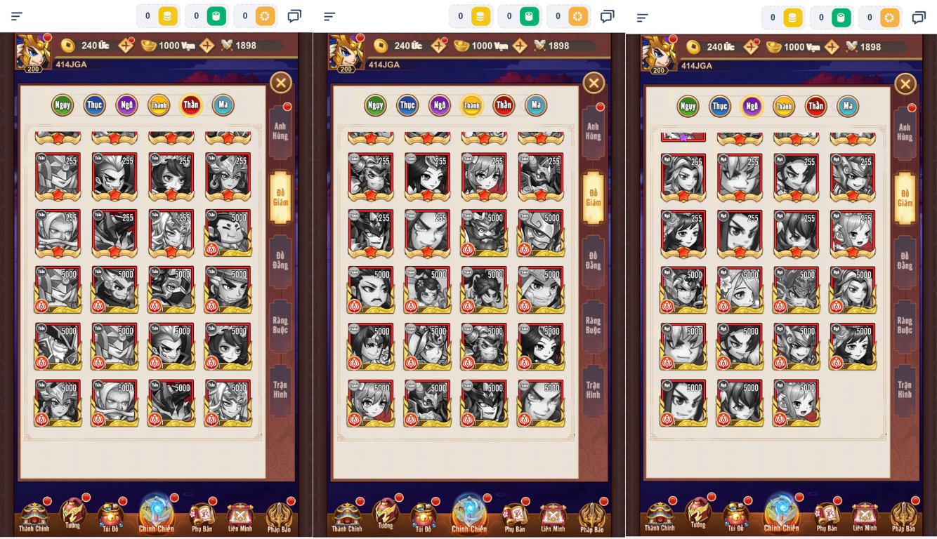 Bản chuẩn cũ 50 sao,5000 lvl tướng update tới chu du,6 slot