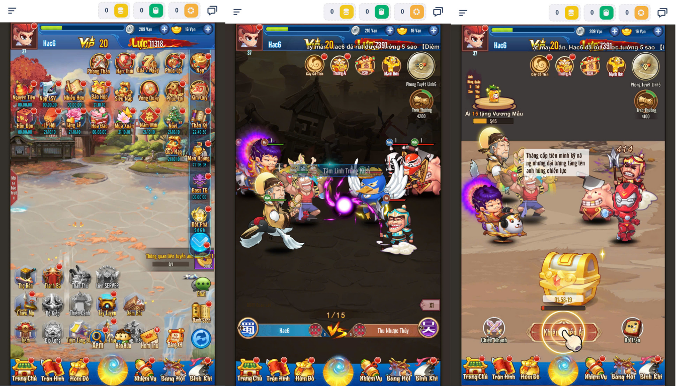 H5 đa nền tảng,bản này đồ họa chibi dễ thương,kiểu loạn anime và tướng 3q và siêu anh hùng,6 slot,bên tướng thần chỉ có 2 tướng