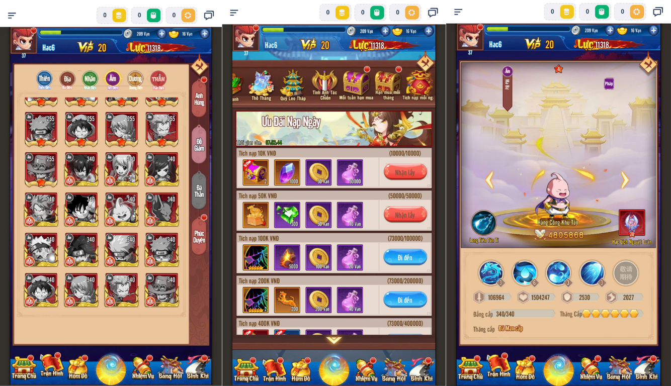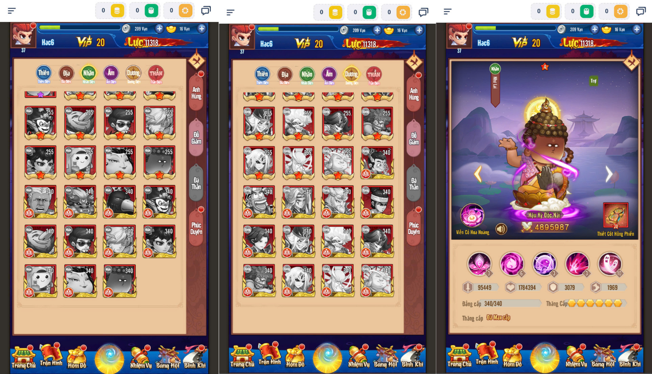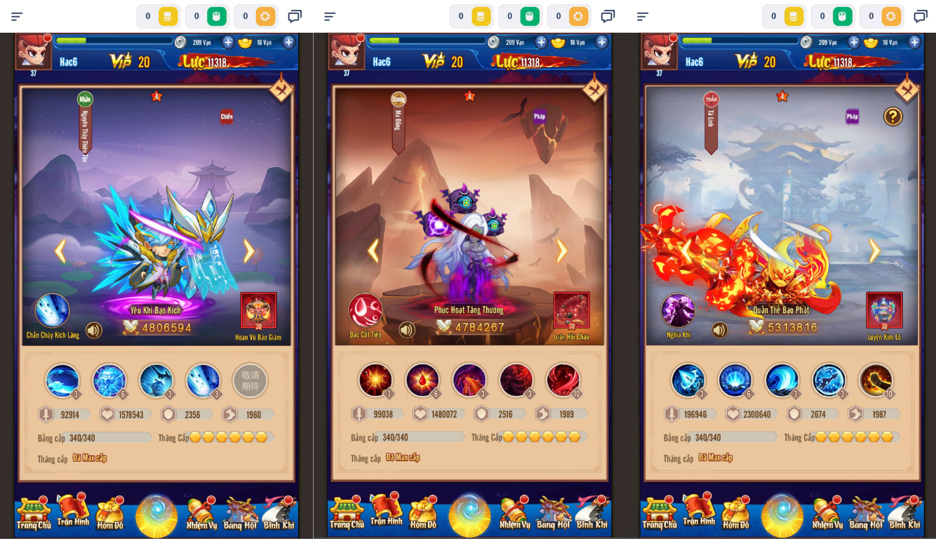 6 slot,nhân vật chính 200lvl,mod thần thú,14 sao….