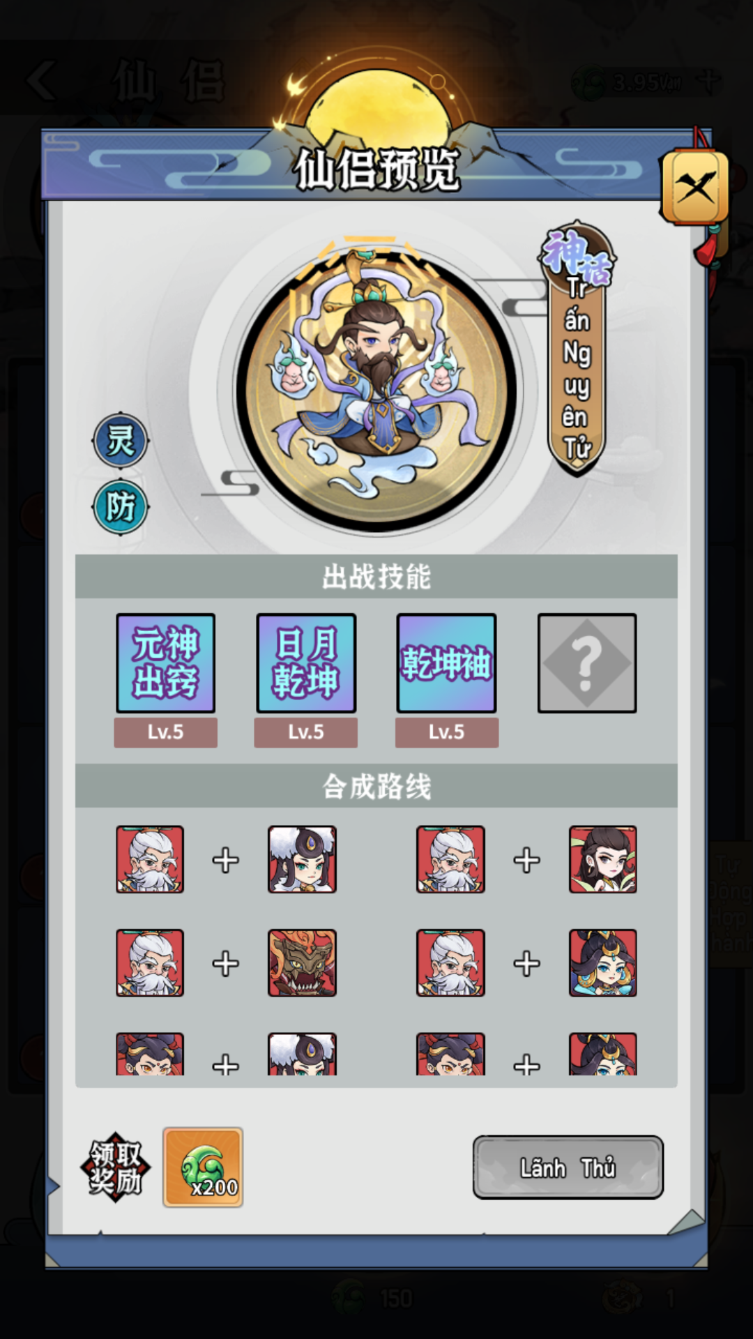 Phiên bản mặc định cấp tối đa là 200