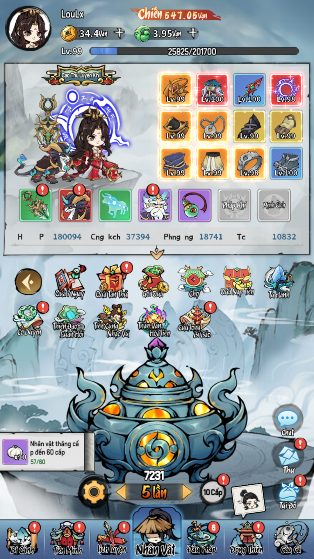 – Tăng giới hạn trang bị lên 10000 cấp